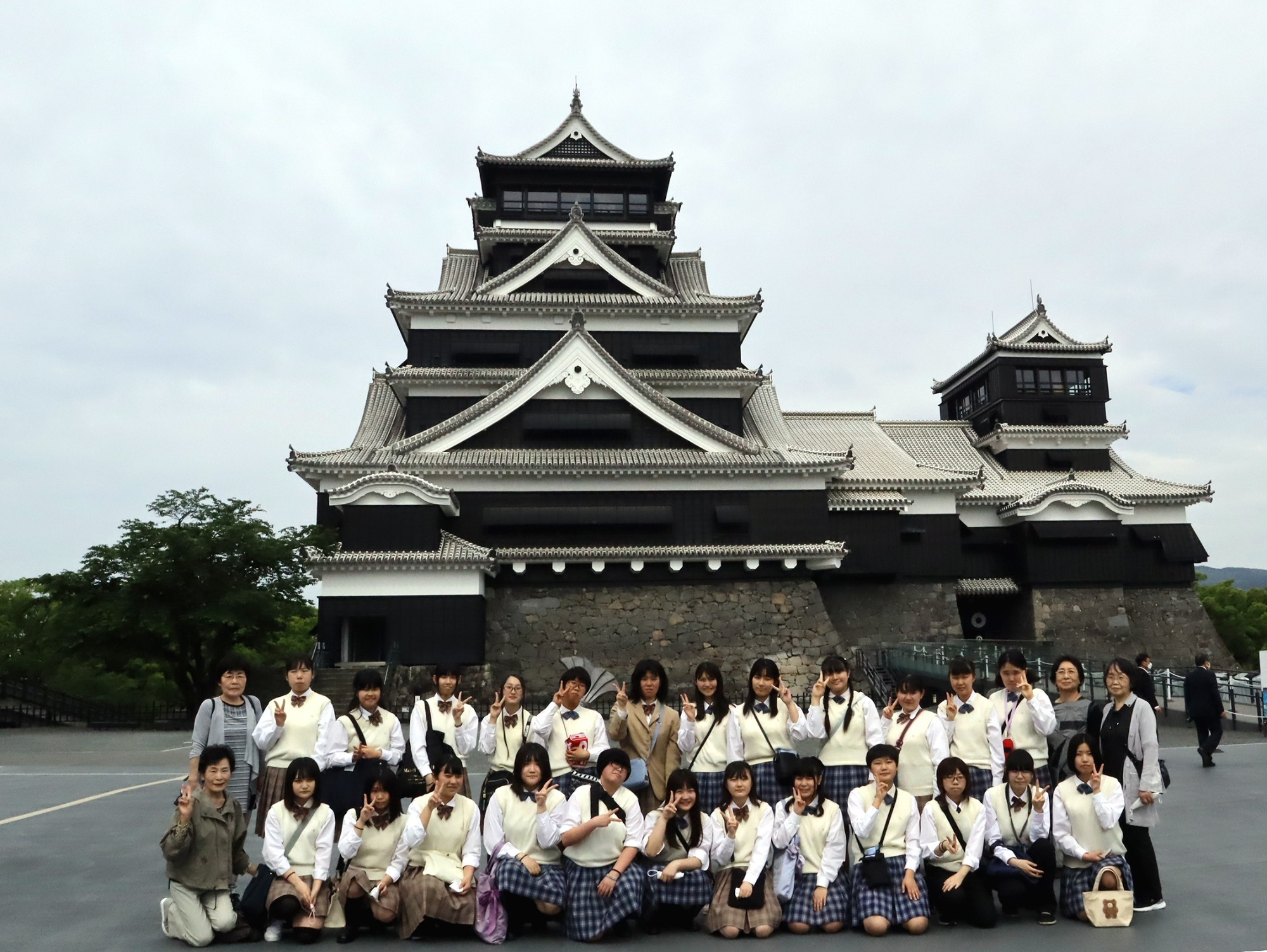 2022年6月17日、本校体育館にて修学旅行報告会が行われました。2022年5月15日から4日間、九州方面への修学旅行に行った3年生が、映像で旅行行程を紹介しました。旅行報告会は、3年生にとって思い出の映像や写真で旅行を振り返ることができ、1,2年生もこの報告会を鑑賞することで、修学旅行の予習にもなり、また楽しみのひとつにもなっています。見学先は阿蘇、熊本城、島原、長崎、佐世保のハウステンボス。2016年の熊本地震以来、遠くから眺めていた熊本城天守閣も、今回は中を見学することができました。複数回の噴火活動の中でも甚大な被害と