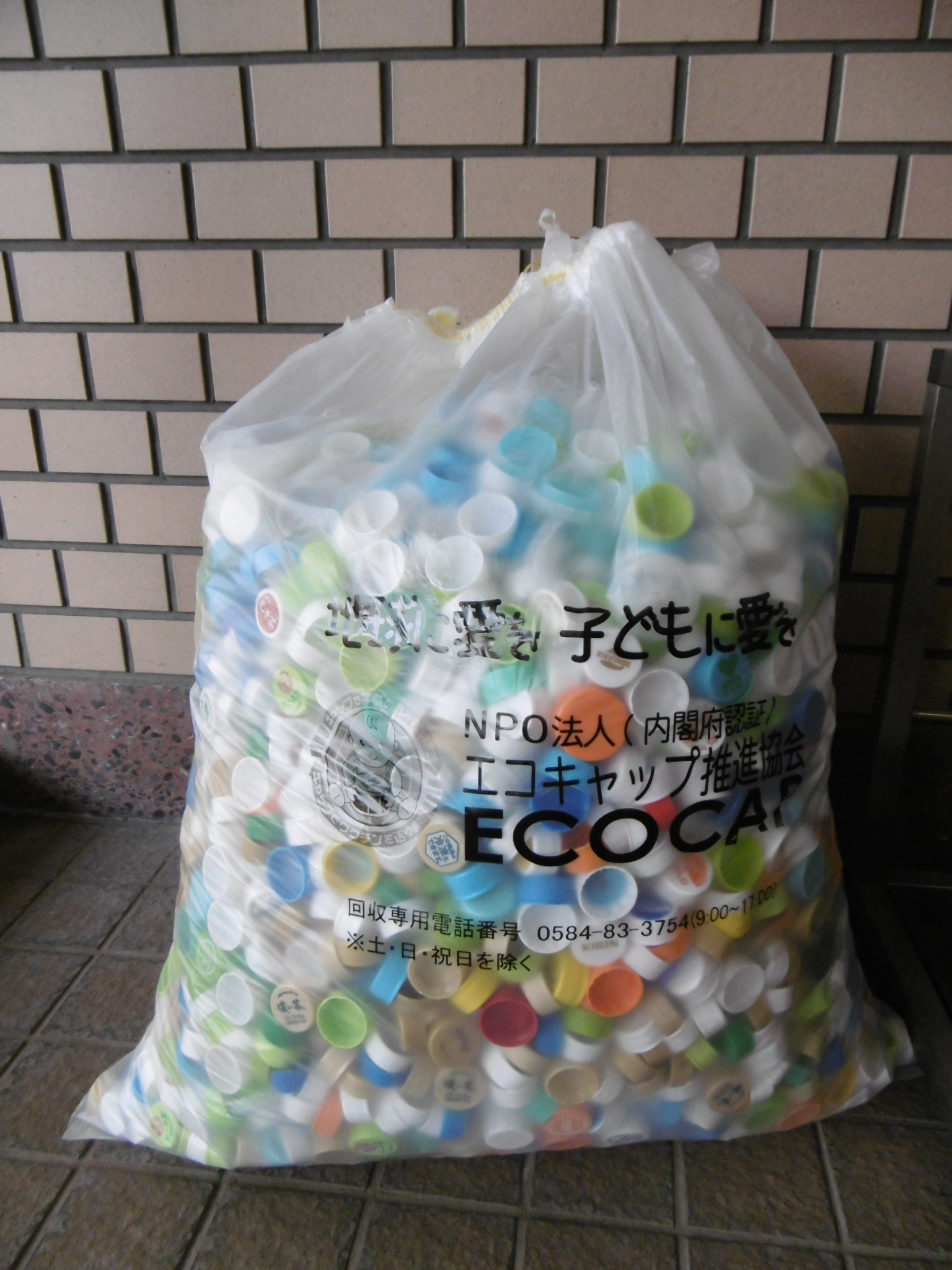 今回寄付したキャップの個数は、3913個(9.1kg)で、ポリオワクチン約4人分にあたるそうです。キャップは再資源化企業に売却されることで、ワクチン代にあてるとともに、二酸化炭素削減にも効果があります。